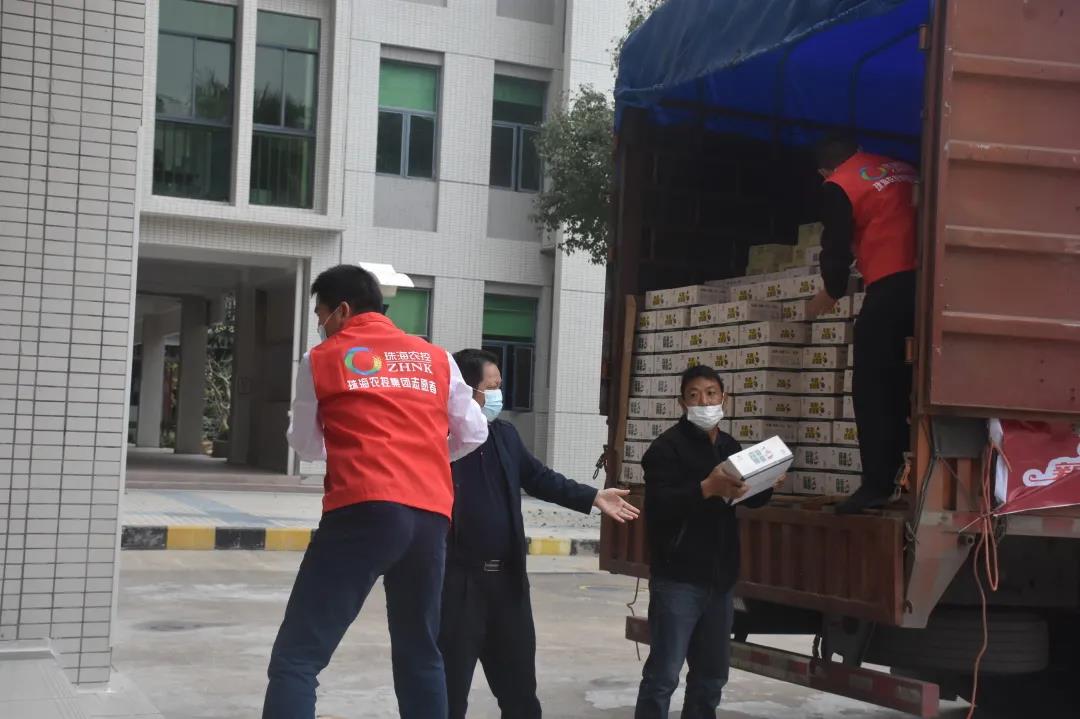 1月18日中午,经过19个小时的长途跋涉,物资车抵达珠海。在线a天v堂一区99xx钟华副总经理带队迎接。随后按照市国资委统筹协调,按照统一指挥,将货物移交给指定人员对接。