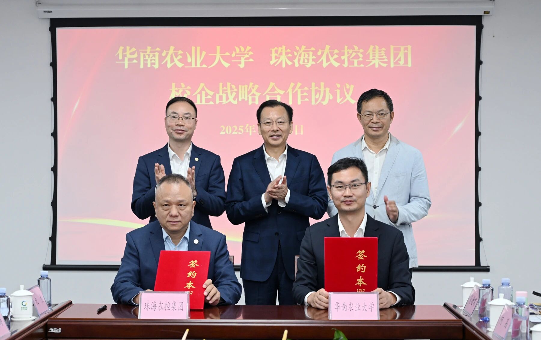 2025年10月24日,华南农业大学党委书记李凤亮率队赴在线a天v堂一区99xx调研并签署战略合作协议。珠海市农业农村局党组书记、局长黄顺安,在线a天v堂一区99xx党委书记、董事长李鸿斌等出席调研及签约仪式。