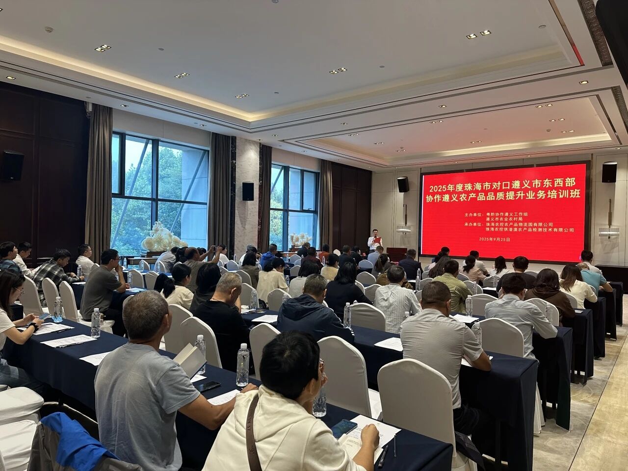 为推动新阶段珠遵两地交流合作持续开展,建立消费帮扶长效机制, 9月25日,由广东省粤黔协作工作队遵义工作组、遵义市农业农村局主办,珠海农控农产品物流园有限公司、珠海农控供港澳农产品检测技术有限公司承办的2025年度珠海市对口遵义市东西部协作遵义农产品品质提升业务培训会议在遵义市举办。